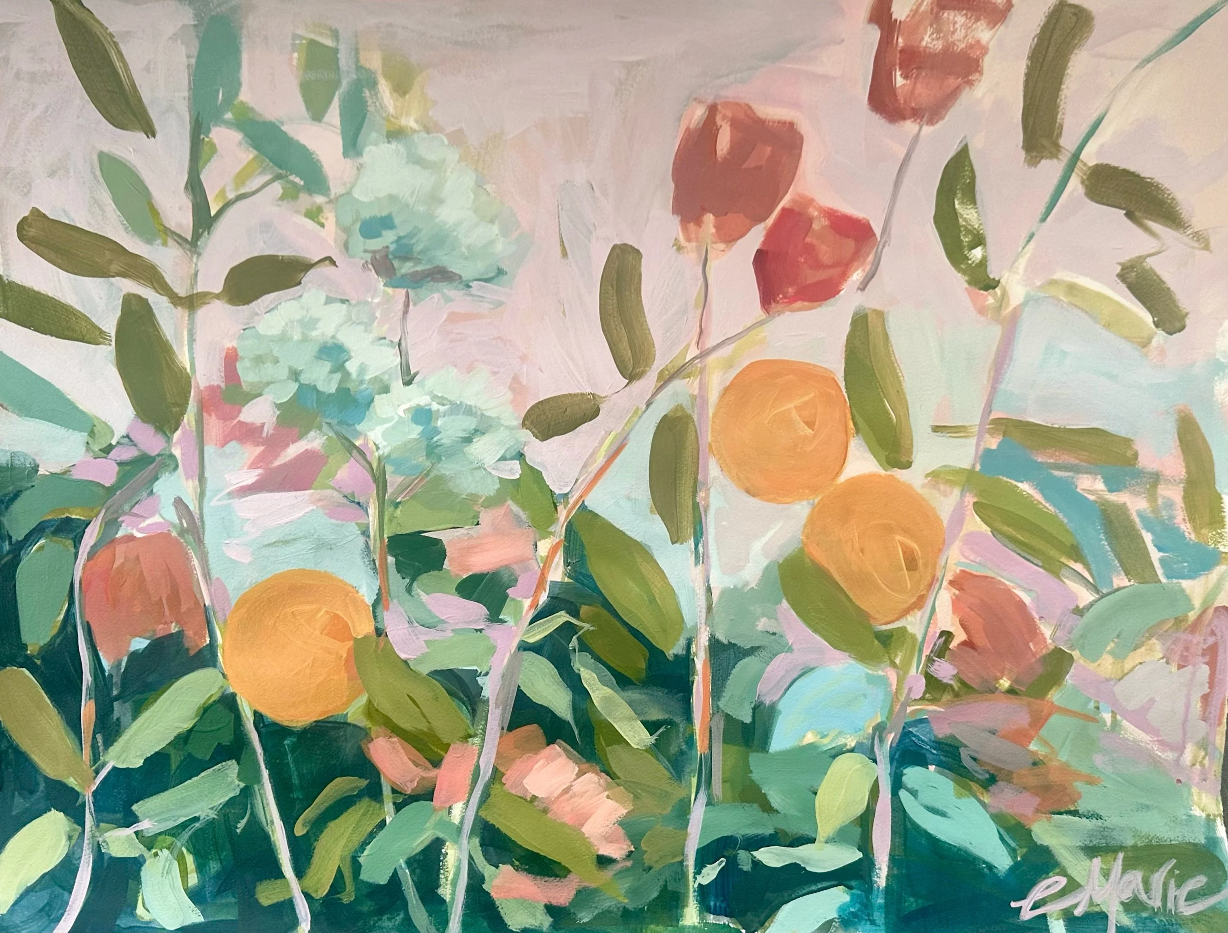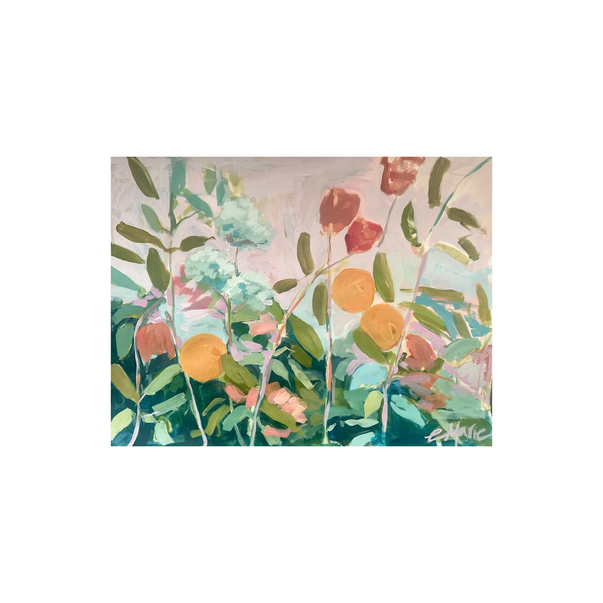 Image 1 of 2 Image 2 of 2 Citrus & Florals on paper $415.00 22” x 30” acrylic on paper Add To Cart Added! 22” x 30” acrylic on paper